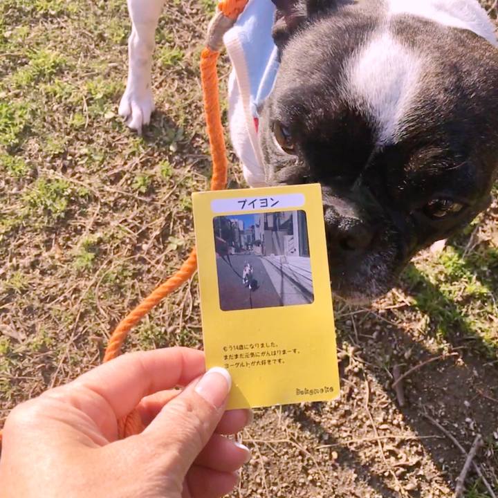 夕方んぽ中、ブイちゃんの名刺を散歩バッグの中に見つけたよ!#フレンチブルドッグ