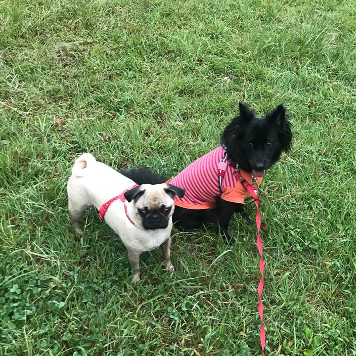今朝はペコちゃんもいて🐶 #保護犬 #黒犬 #雑種 #あさんぽ