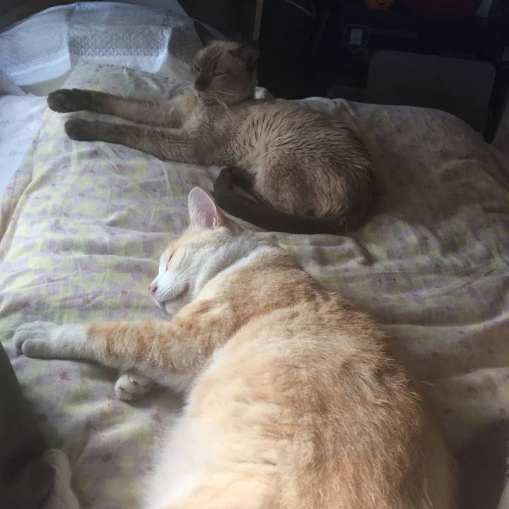 夏の猫のびのびのびのびのびのびのび #ねこ句 #おねむショコラさんと三ちゃん
