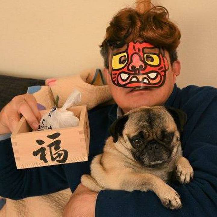 節分や 豆まき梅ちゃん 福を呼ぶ #パグ#いぬ句 #節分