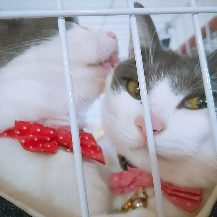 今日も濃厚接触ちゅー💖ですがにゃにか?🐾 #みるしょこ#ハチワレ#姉妹#なかよし
