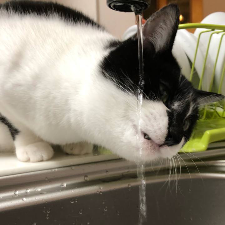 キバちら #マスク猫 #シンク隊 #水修行 #白黒