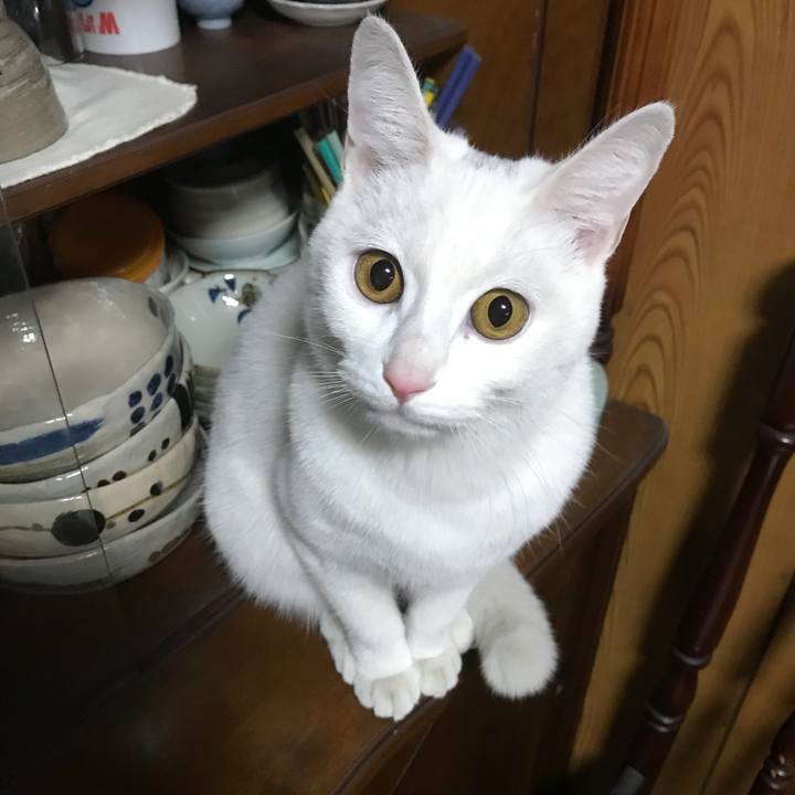 ごはんはまだでしゅか? #白猫 #マトリョーシカ部
