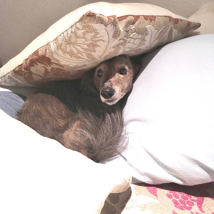 かぶって寝てたよねー😴 #おざぶおぶざいやー #クッションの部