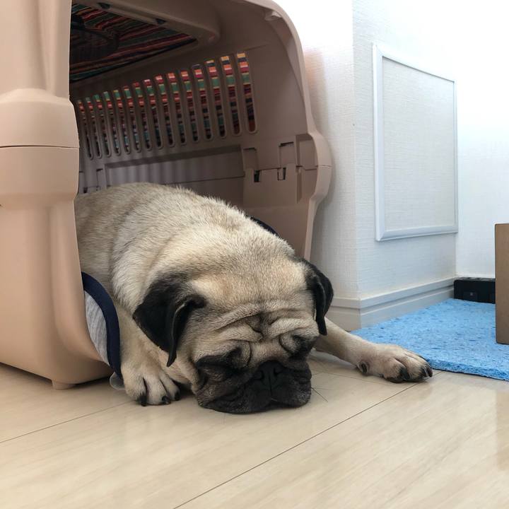 あごはヒンヤリ希望 #パグ #おつぶれ饅頭部