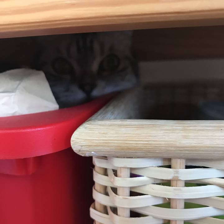 どこに行ったかと探していたら、棚から覗いておった😂#スコティッシュ