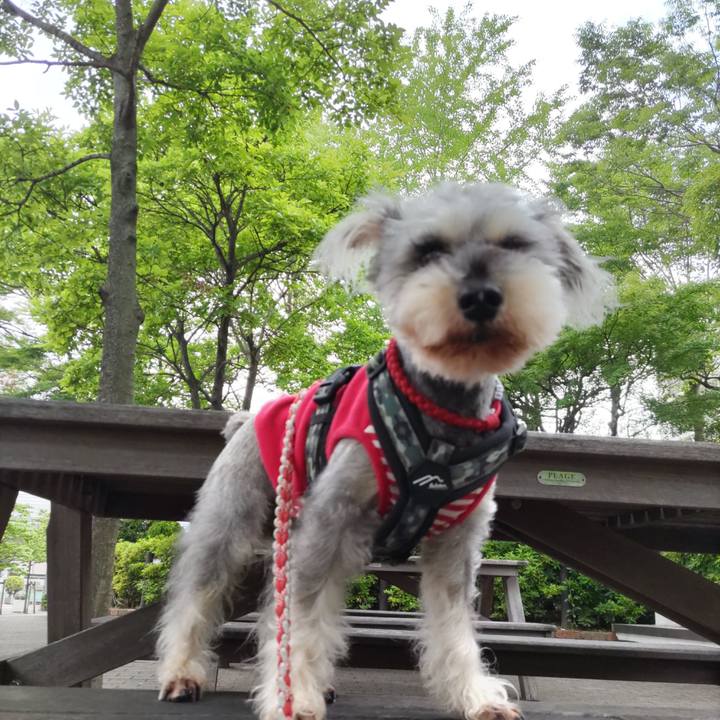 朝ん歩は気持ちよく行ってきたよ🐾帰宅後☔が降り出した #シュナウザー
