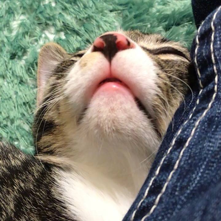 #生後119日目 2082g #旅猫 ぼく旅先でもスヤスヤしたよ〜