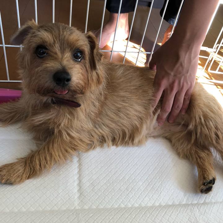 朝のナデナデタイムon the toilets😅#ノーフォークテリア #短足部