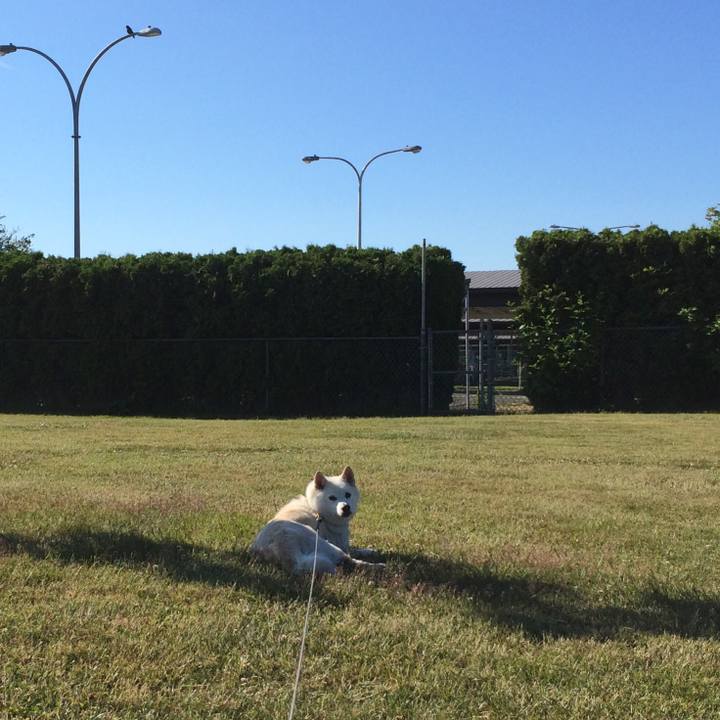 ちょっとの日陰も見逃さない。#朝んぽ #白柴 #柴犬 #柴犬ライフ