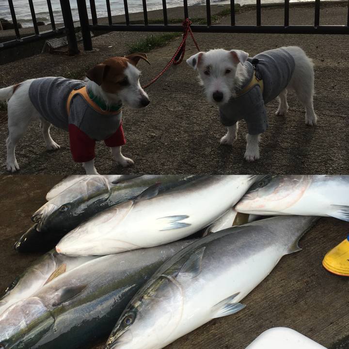 あさんぽで大きなブリを見たよー🐶 #ひみ寒ブリ #ジャックラッセルテリア