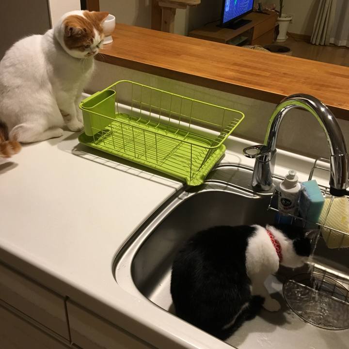 もるに大きく差を開けられた ちー。 #シンク隊 #茶白 #白黒