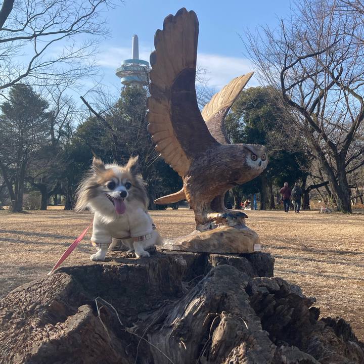 ホッホッホ 幸運のシンボル🦉フクロウさんだよ #航空公園の木彫り動物
