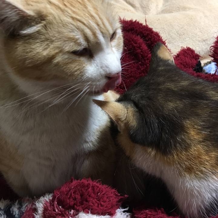 ふみふみ終わりましたので、妹をねかしつけます。ぺろぺろ。