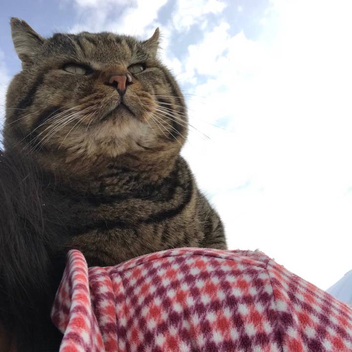 雪結晶を撮影していると背中に乗るんです #ボス猫 #キジトラ #ほぼ日ねこの日